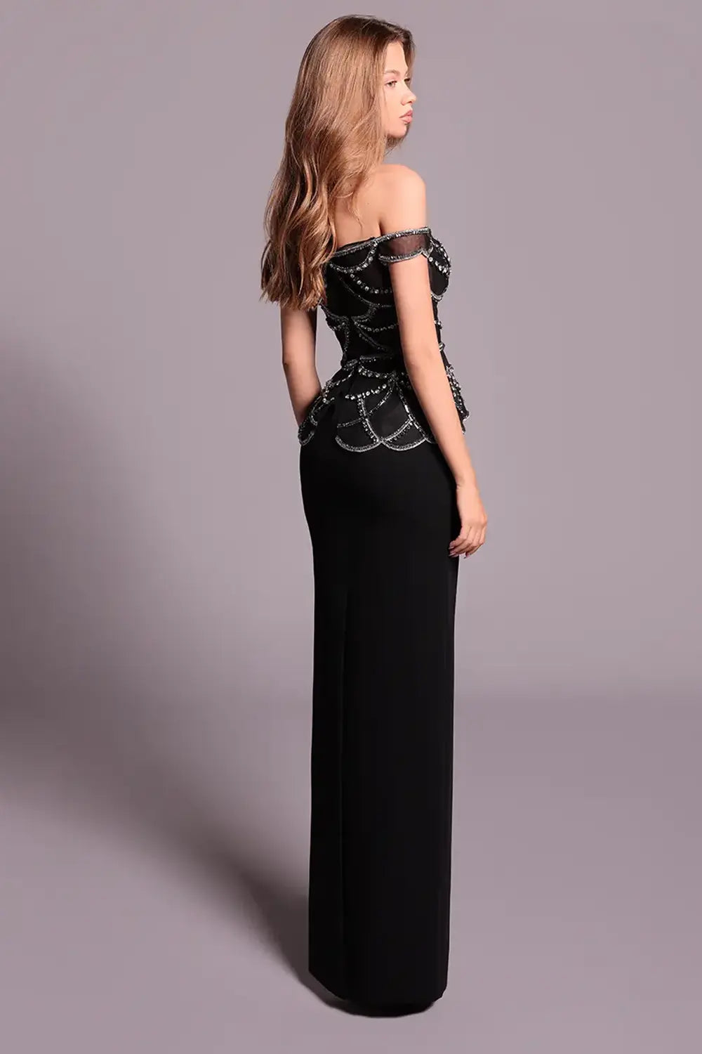 Tarik Ediz 99008 DAVI – Off-Shoulder Embroidered Bodice Gown with Straight Crepe Skirt