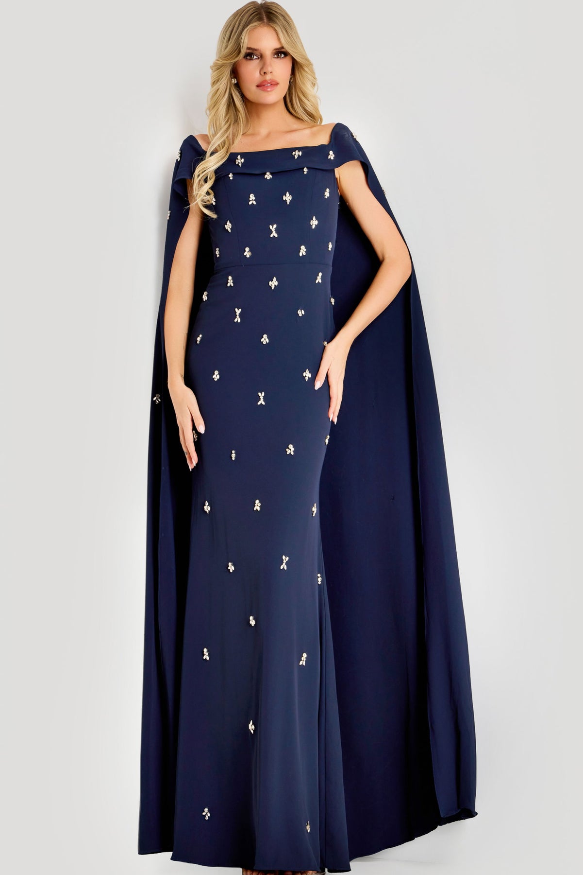Embellished Cape Shoulder Evening Dress | Jovani 44575