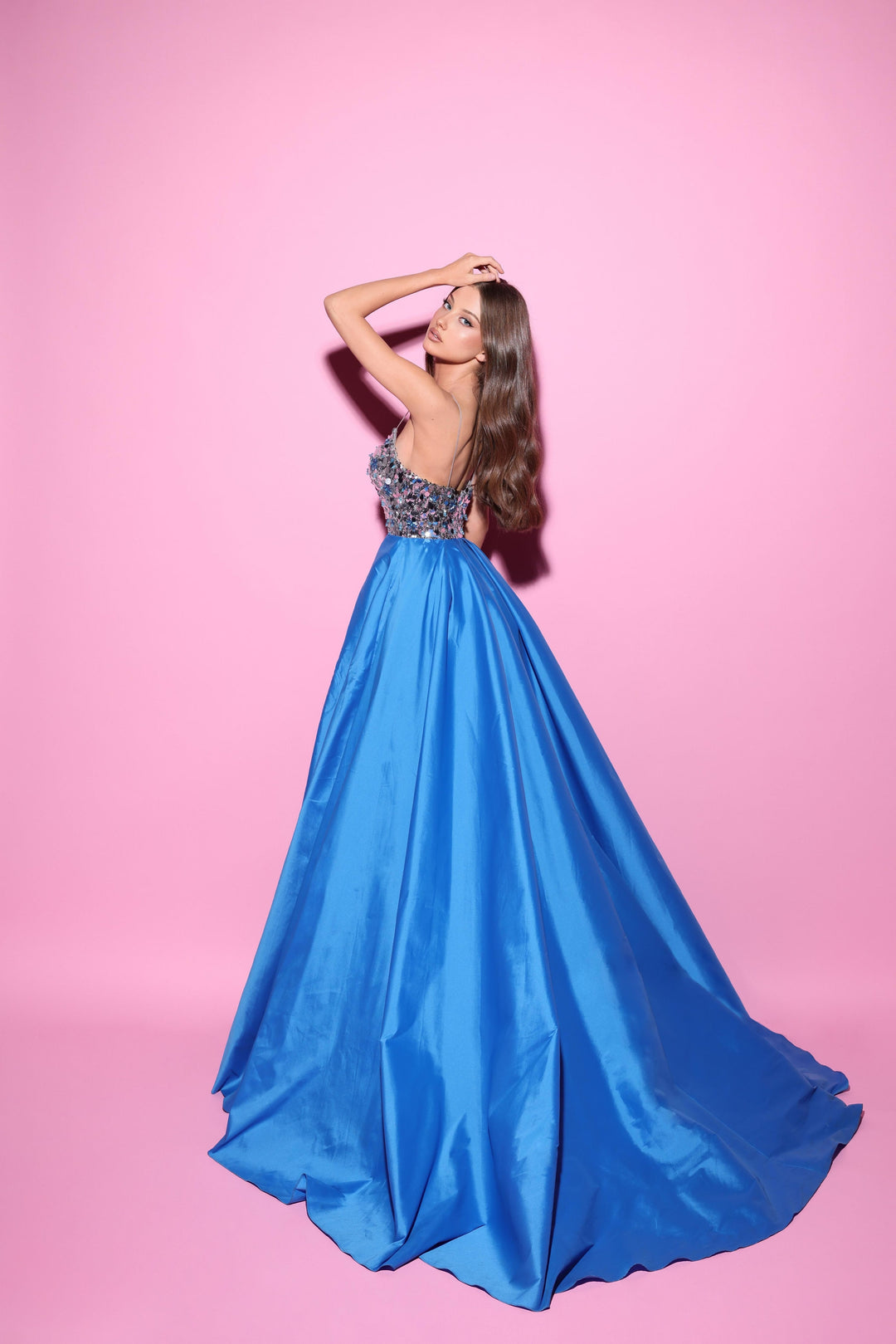 Radiate elegance in the 54198 gown by Tarik Ediz, a timeless design crafted for unforgettable occasions. The flattering V-neckline frames the décolletage with refined charm, while the floor-length silhouette elongates the figure for a statuesque look. Made from premium fabrics, this gown ensures both comfort and couture-level style, allowing you to feel confident and graceful throughout the evening. Perfect for weddings, proms, or black-tie soirées, it’s a versatile piece that guarantees a captivating entrance.
