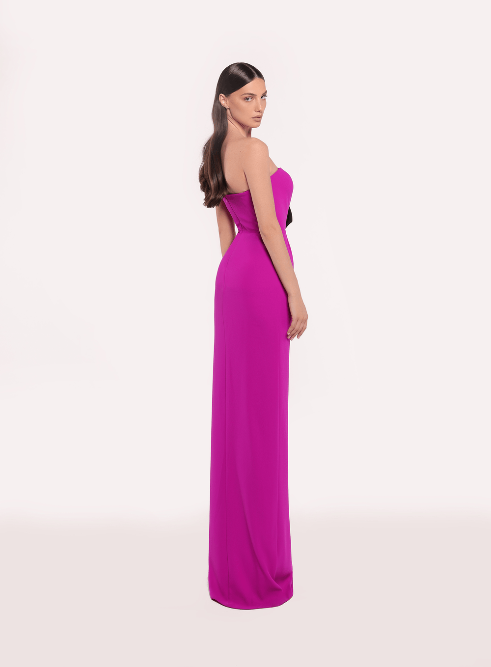 Tarik Ediz 98795 NATALIE – Classic Strapless Straight Neckline Sheath Dress with Bow Wrap