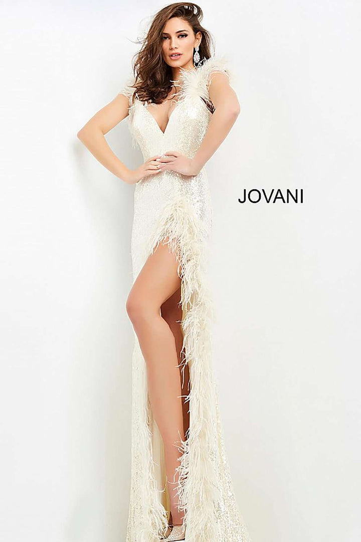 High Slit Feather Embellished Prom Dress Jovani 06164