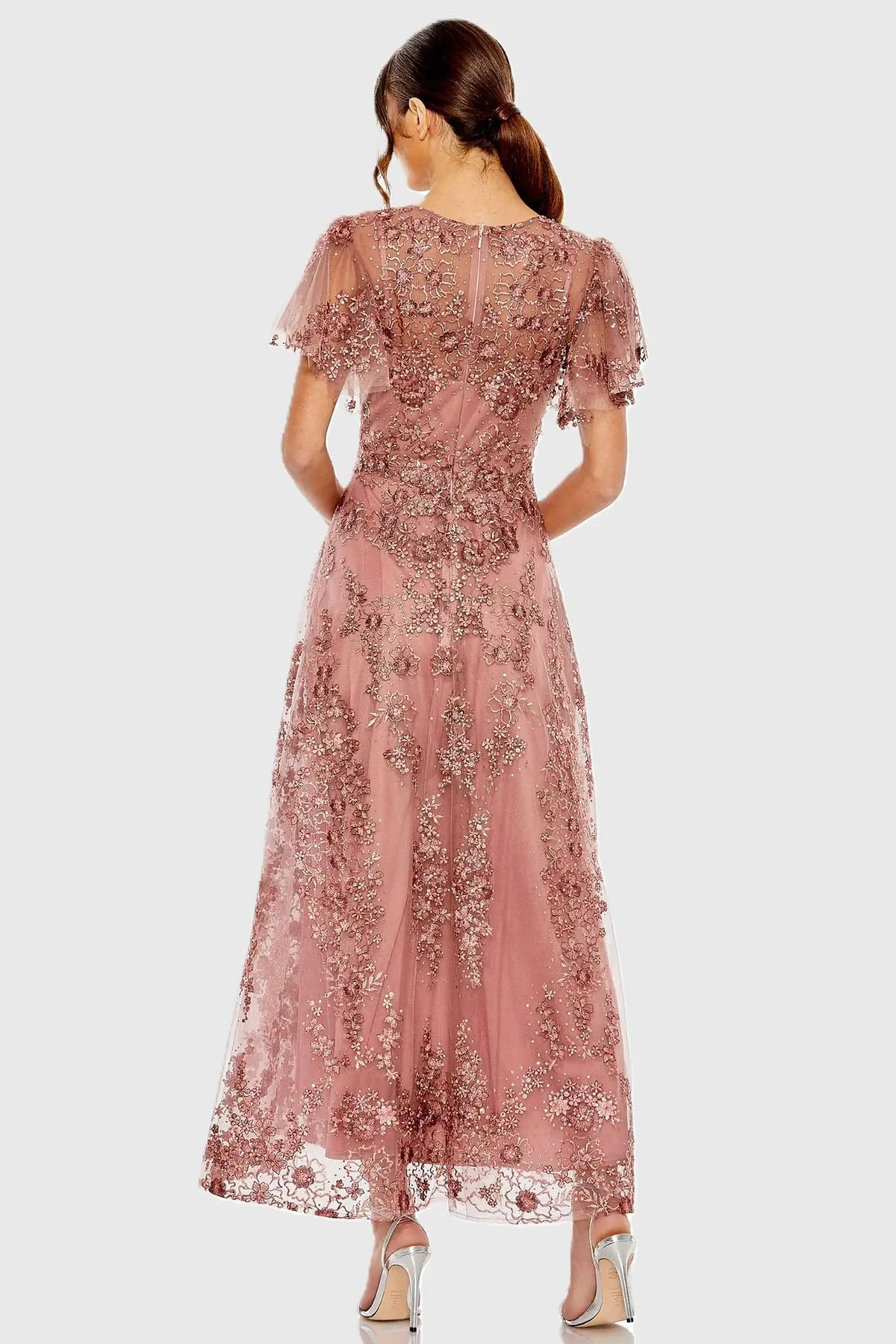 Mac Duggal Style 20486 Pink Embroidered Flutter Sleeve A Line Dress