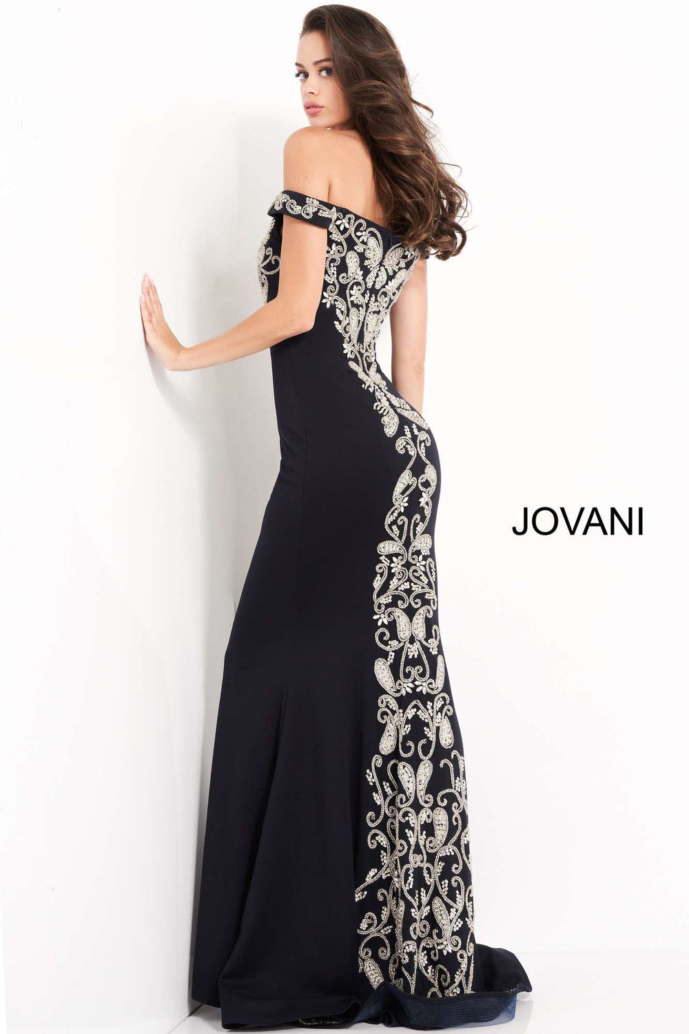 Navy Off the Shoulder Embroidered Evening Dress Jovani 02576